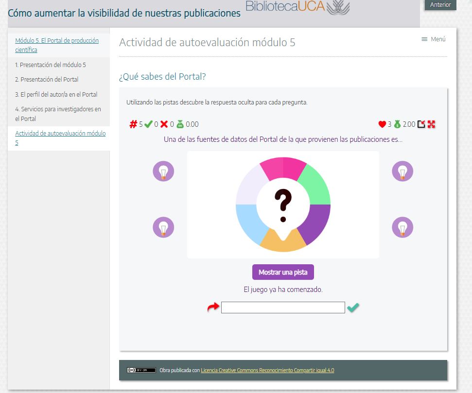 Ejemplo: En la siguiente imagen vemos un ejemplo de un juego añadido en uno de los cursos que ofrece la Biblioteca.
