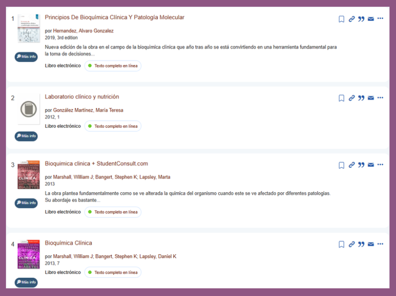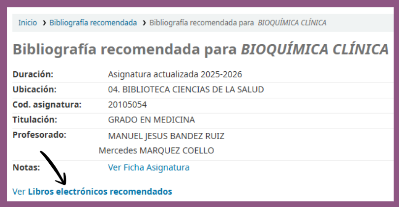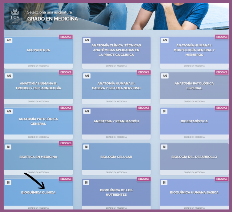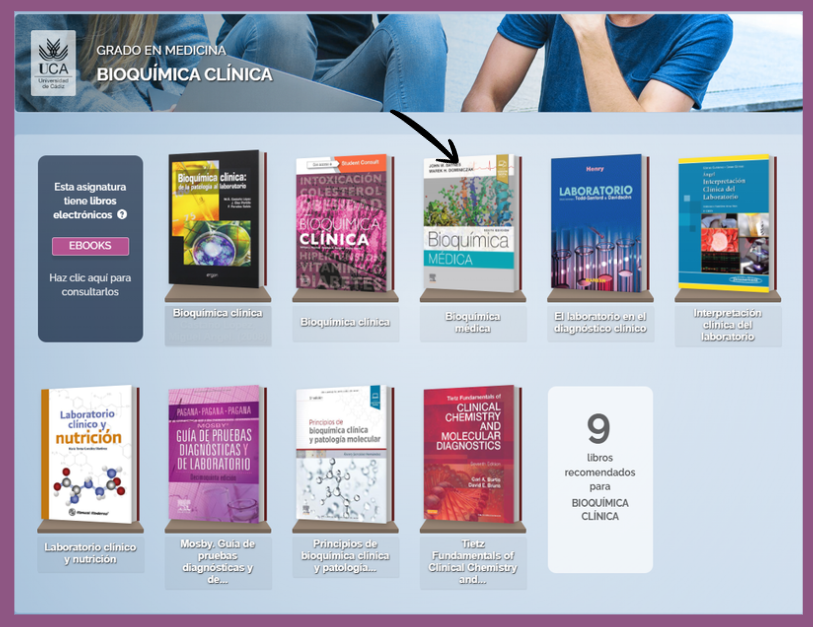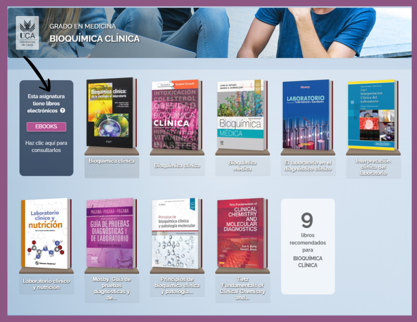 Además se destacan las asignaturas que cuentan con ebooks, de tal manera que se pueden consultar los libros electrónicos.