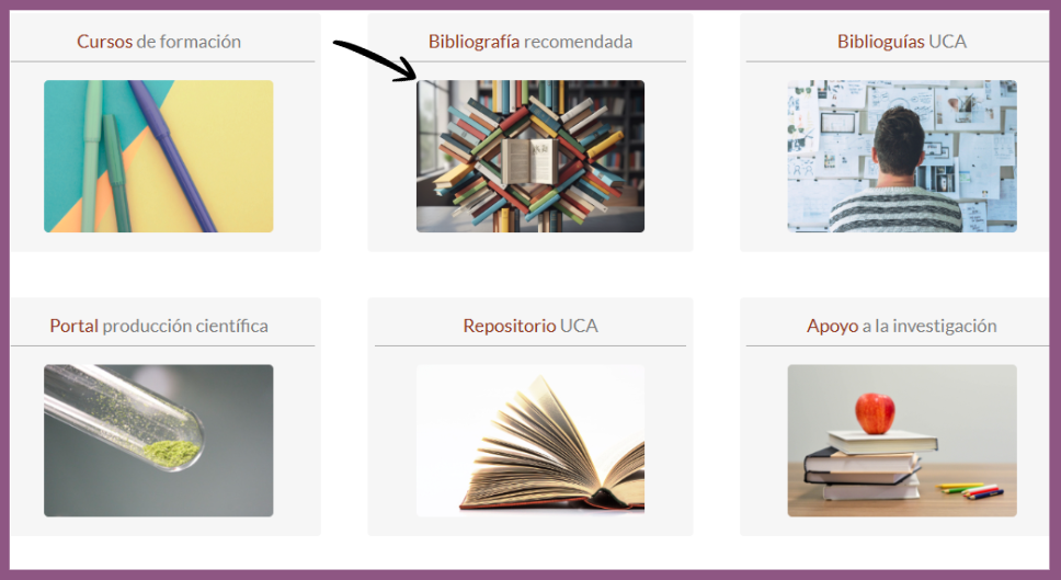Cada grado está dividido por asignaturas, pudiéndose consultar la bibliografía recomendada para cada una de ellas.