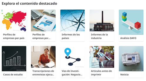 Además, podemos encontrar casos prácticos, informes económicos por países, entrevistas, vídeos, análisis DAFO, informes de investigación de mercados o noticias.