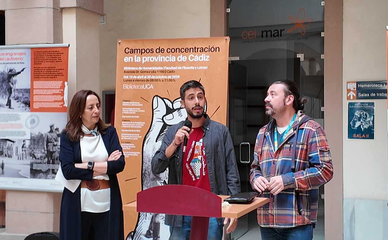 El pasado viernes 10 de abril se inauguró en la Biblioteca de Humanidades la exposición «Campos de concentración en la provincia de Cádiz», organizada por la Cátedra de Memoria Histórica y Democrática.