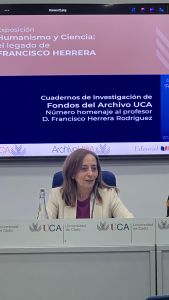 Como parte del homenaje, la Directora del Servicio de Publicaciones, Elena Cuasante Fernández, presentó el número 7 de la revista Cuadernos de Investigación de Fondos del Archivo UCA, dedicado al profesor Herrera, fallecido en 2023. La publicación de este homenaje surge de la idea y propuesta de Santiago Moreno Tello, investigador y autor en este número.