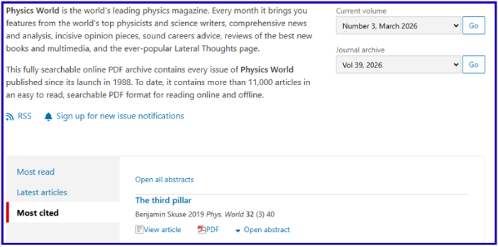 En abril presentamos IOP Science, una plataforma que da acceso a los textos completos de las revistas electrónicas del Institute of Physics (Reino Unido). Entre los títulos disponibles destaca la revista insignia de IOP: Physics World.