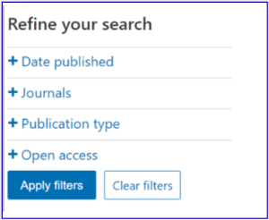 Para refinar la búsqueda se pueden utilizar los siguientes filtros: