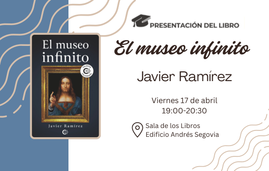 El próximo viernes 17 de abril tendrá lugar la presentación de la novela «El museo infinito» de Javier Ramírez, en la Sala de los Libros del Edificio Andrés Segovia, de 19:00 a 20:30.