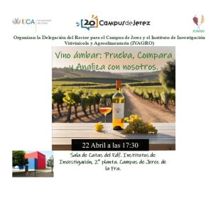 Cata guiada de vinos de Jerez: actividad organizada por la Delegación del Rector para el Campus de Jerez y el Instituto de Investigación Vitivinícola y Agroalimentaria (IVAGRO) y forma parte de la celebración del 20º aniversario del Campus de Jerez.